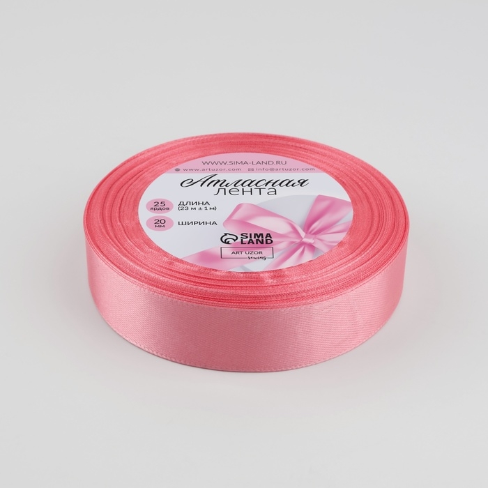 Лента атласная, 25 мм × 33 ± 2 м, цвет розовый №005