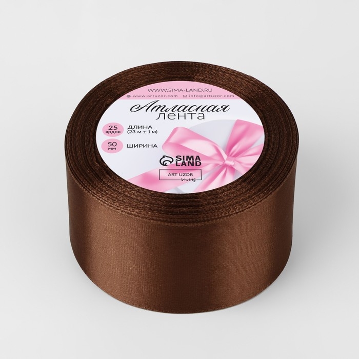 Лента атласная, 50 мм × 23 ± 1 м, цвет тёмно-коричневый №32