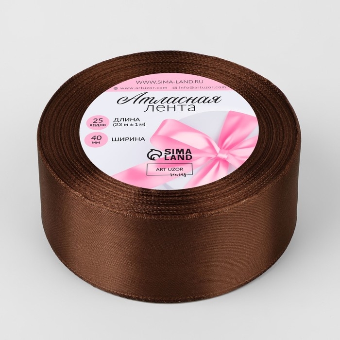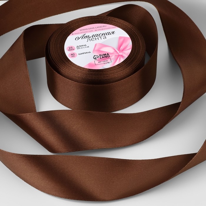 Лента атласная, 40 мм × 23 ± 1 м, цвет тёмно-коричневый №32