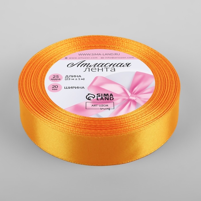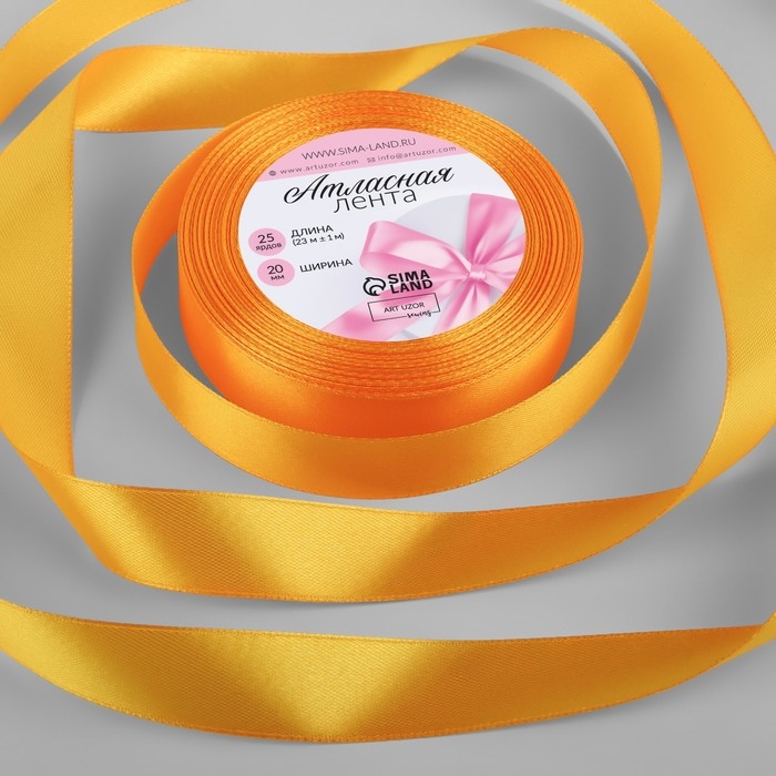 Лента атласная, 20 мм × 23 ± 1 м, цвет жёлто-оранжевый №17