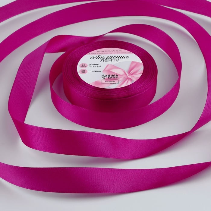 Лента атласная, 20 мм × 23 ± 1 м, цвет холодный малиновый №95