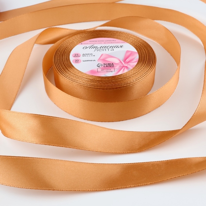 Лента атласная, 20 мм × 23 ± 1 м, цвет светло-коричневый №158
