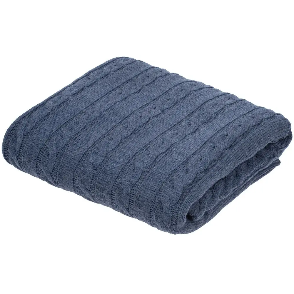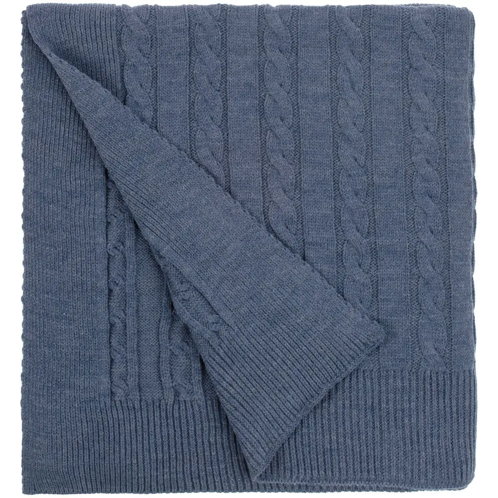 Модель: однотонный плед с фактурной вязкой, которая позволяет сделать его воздушным и объемным. Чередуя различные типы петель на гладком полотне, можно вывязать любую графику — логотип, текст, товарный знак.