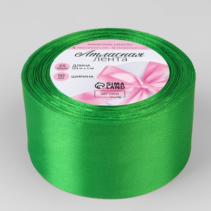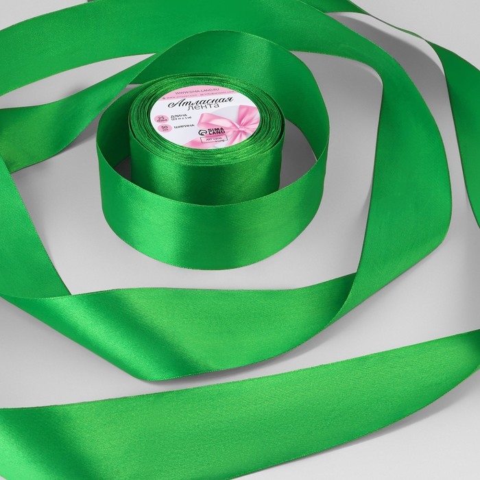 Лента атласная, 50 мм × 23 ± 1 м, цвет зелёный №19