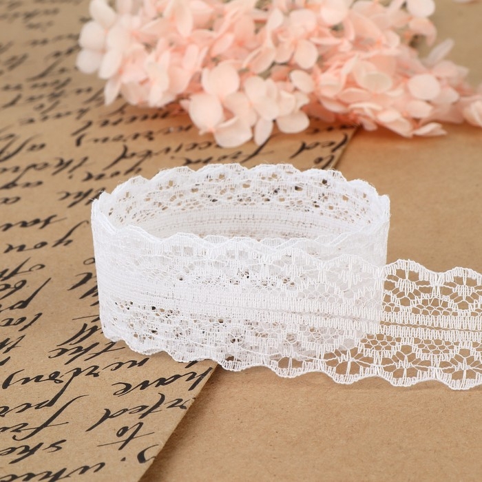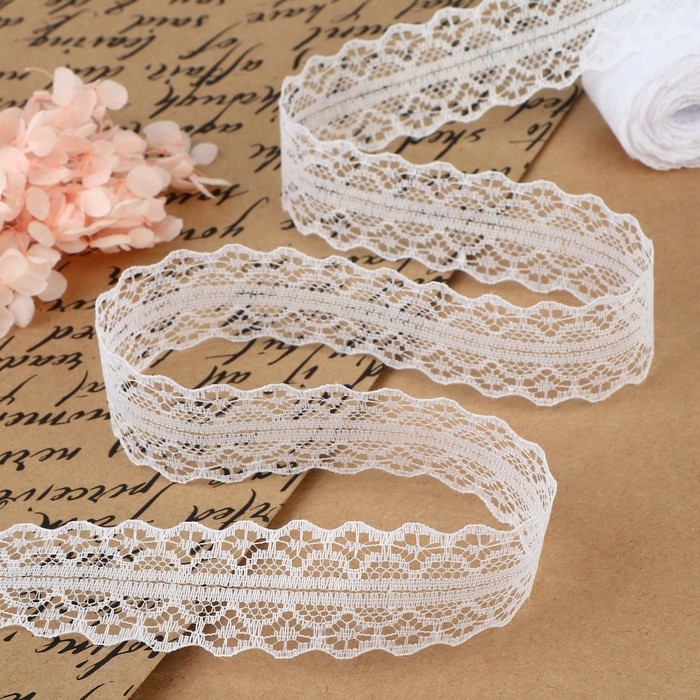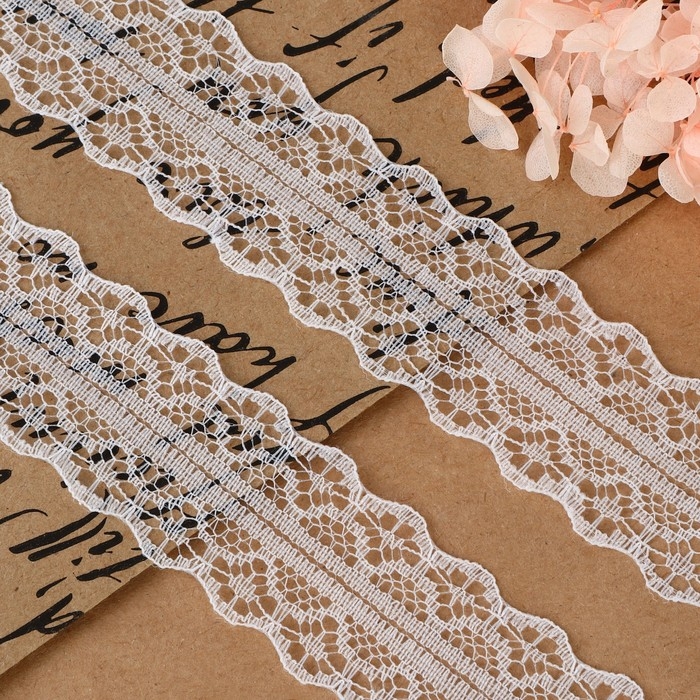 Кружево гипюровое, 35 мм × 9 ± 0,5 м, цвет белый