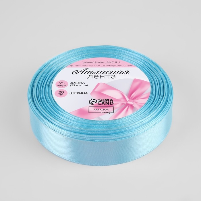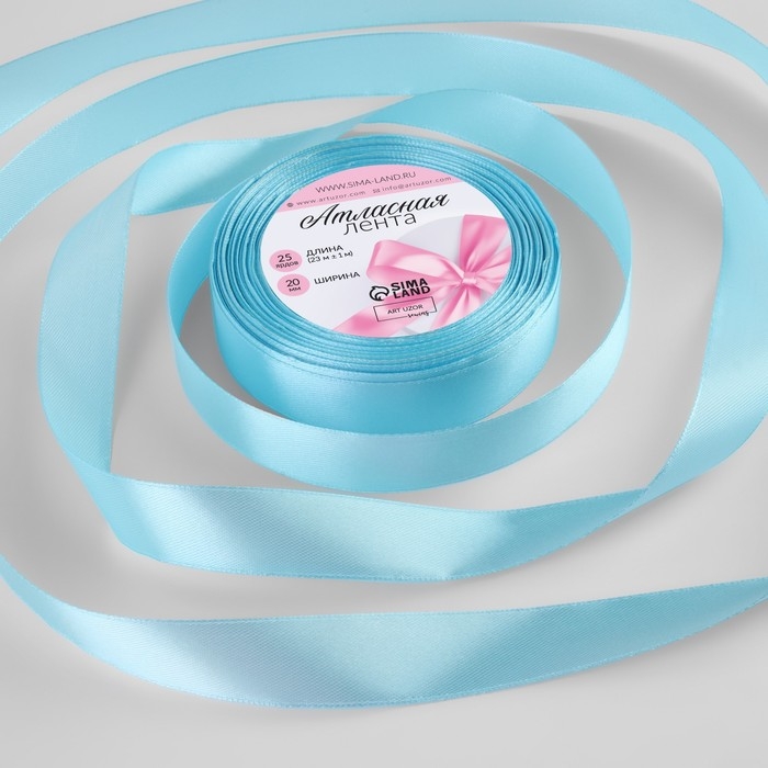 Лента атласная, 20 мм × 23 ± 1 м, цвет голубой №211