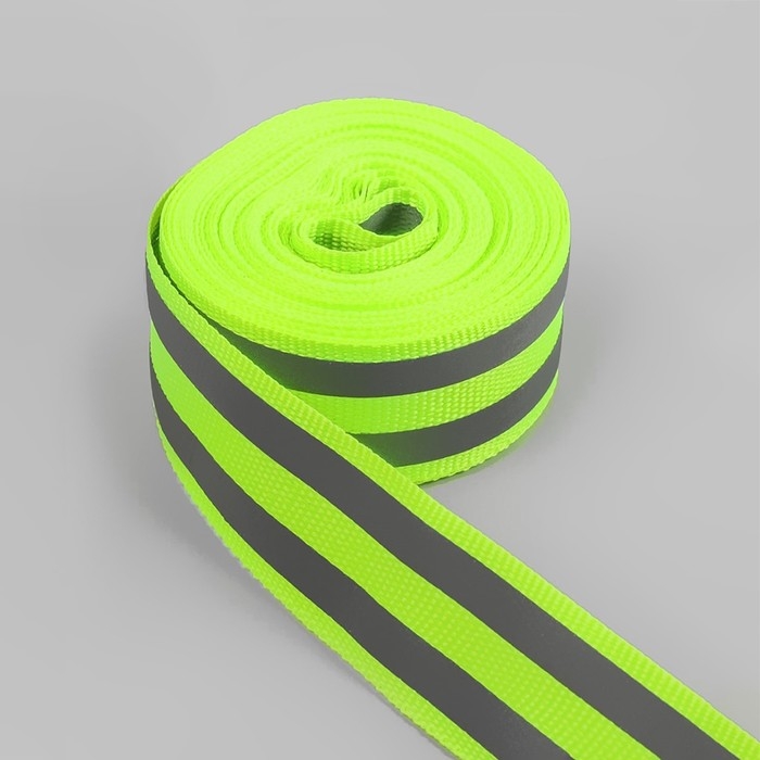 Светоотражающая лента-стропа, 20 мм, 5 ± 1 м, 2 полосы, цвет салатовый