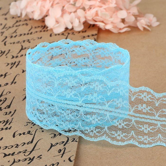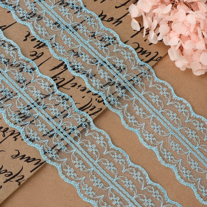 Кружево капроновое, 45 мм × 10 ± 1 м, цвет голубой