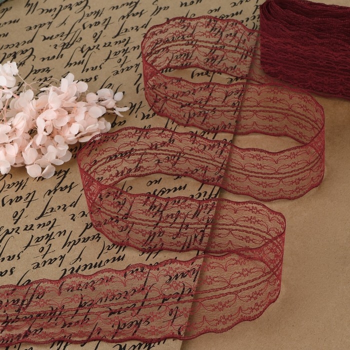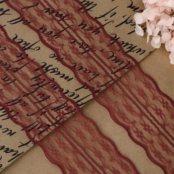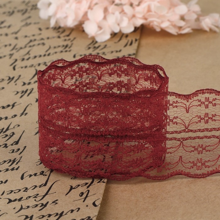 Кружево капроновое, 45 мм × 10 ± 1 м, цвет бордовый