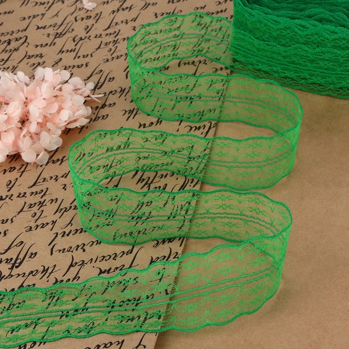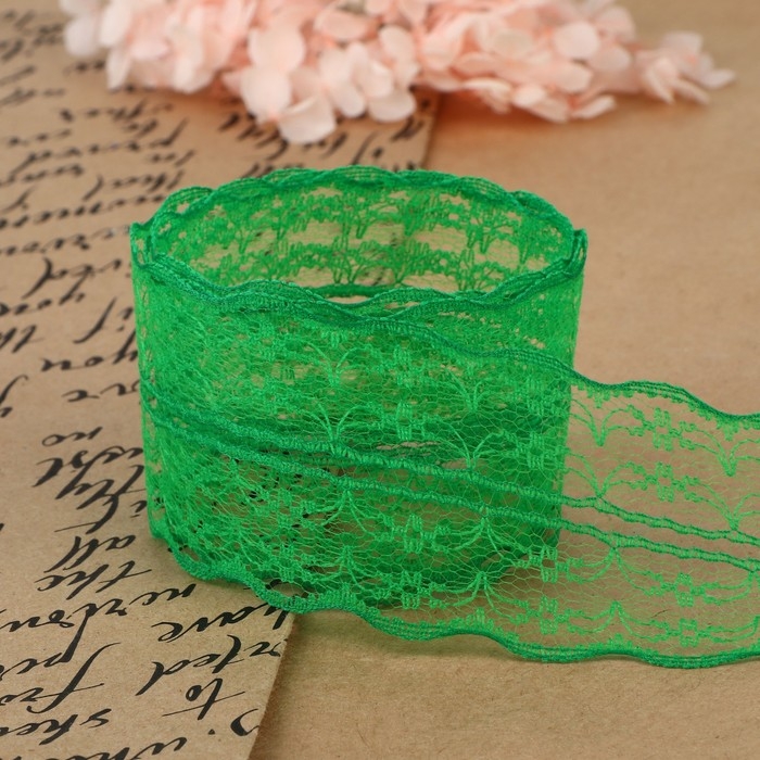 Кружево капроновое, 45 мм × 10 ± 1 м, цвет зелёный