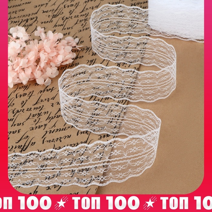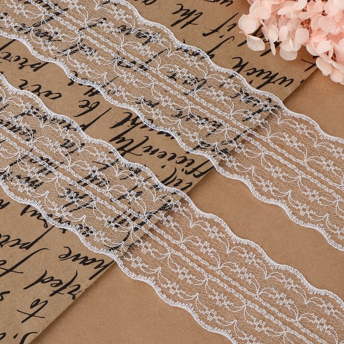 Кружево гипюровое, 45 мм × 9 ± 0,5 м, цвет белый