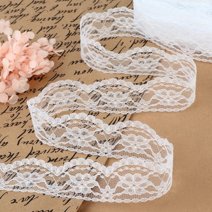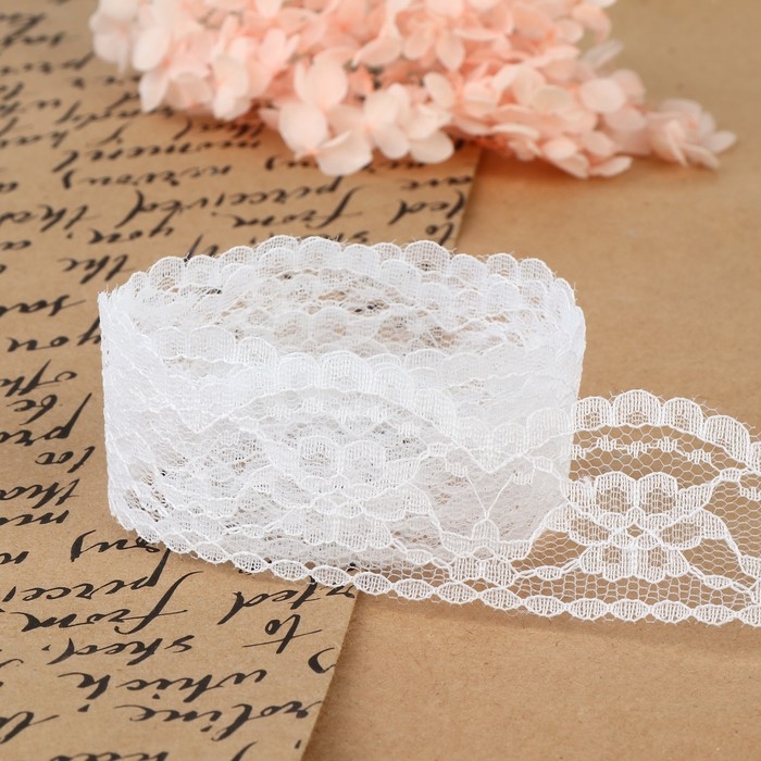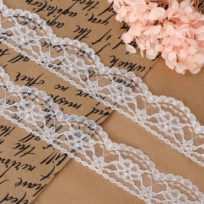 Кружево капроновое, 35 мм × 10 ± 1 м, цвет белый