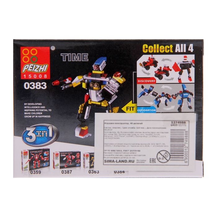 С этим конструктором справится даже малыш. Ребёнок с лёгкостью соберёт робота-исследователя и вместе с ним отправится изучать свою планету. Когда миссия будет выполнена, чадо трансформирует робота в один из двух видов техники и устроит захватывающие гонки.