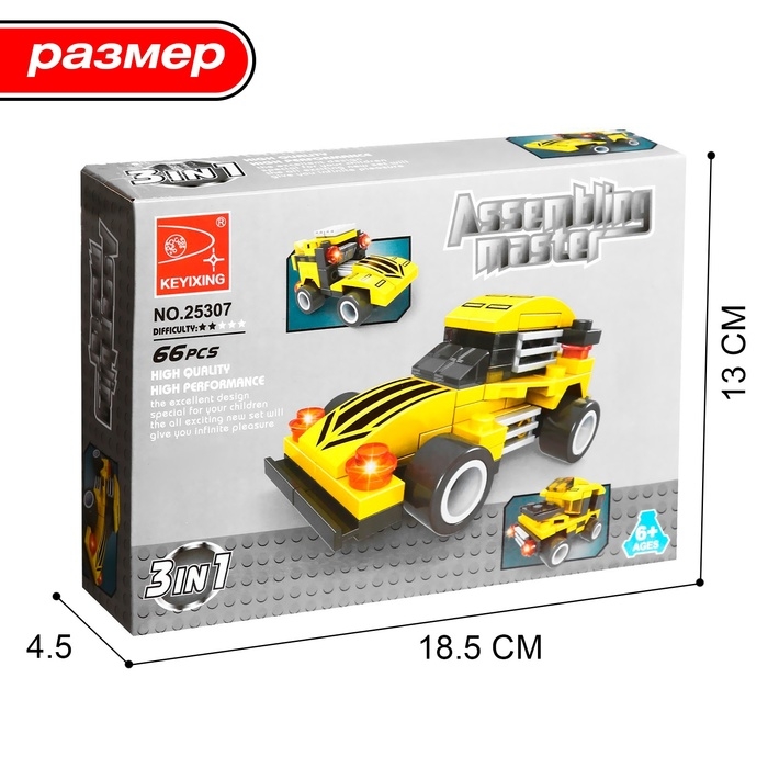Конструктор «Гонка», 3 варианта сборки, 66 деталей
