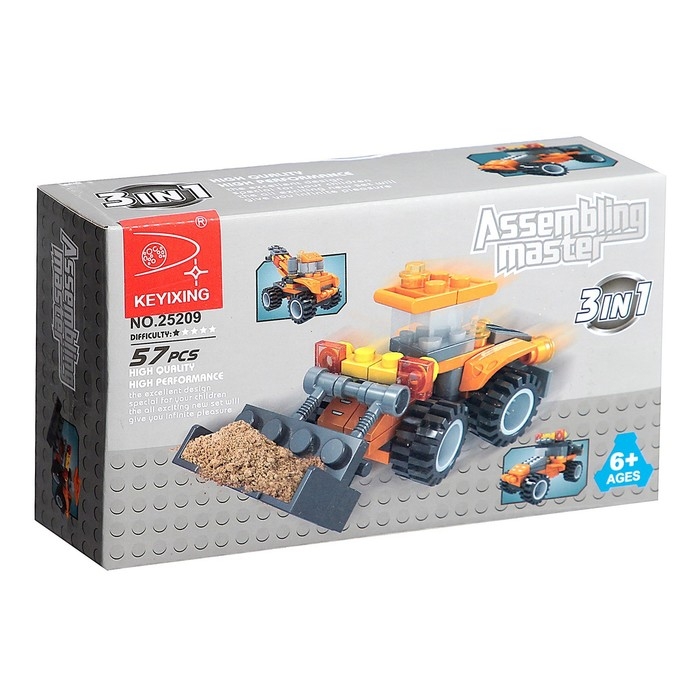 С набором торговой марки Ausini мальчишка организует собственную строительную бригаду и приступит к возведению города. Из 57 деталей ребёнок соберёт один из трёх видов спецтехники: экскаватор, автокран или погрузчик.