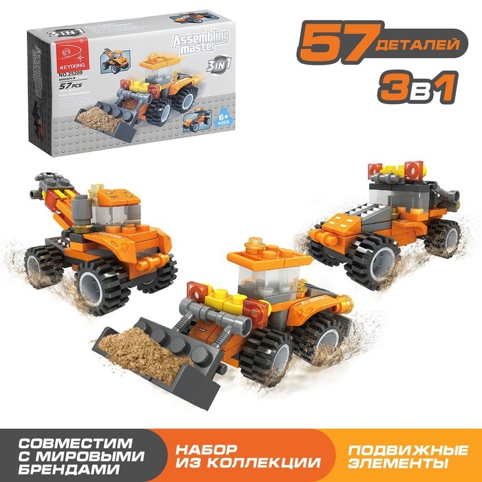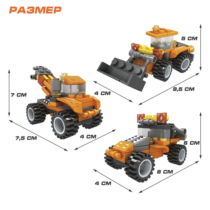 Конструктор «Стройтехника», 3 варианта сборки, 57 деталей
