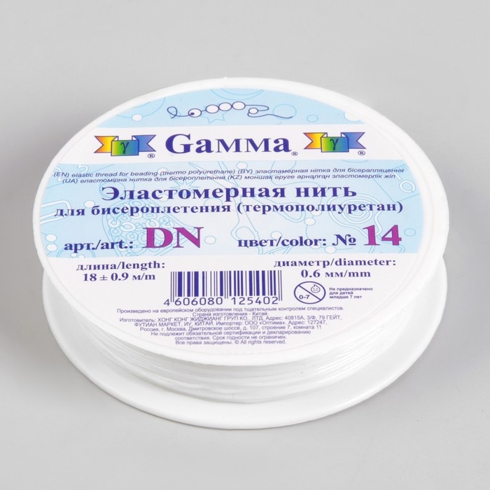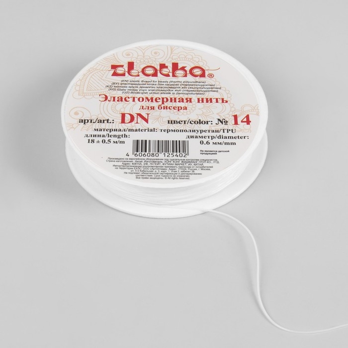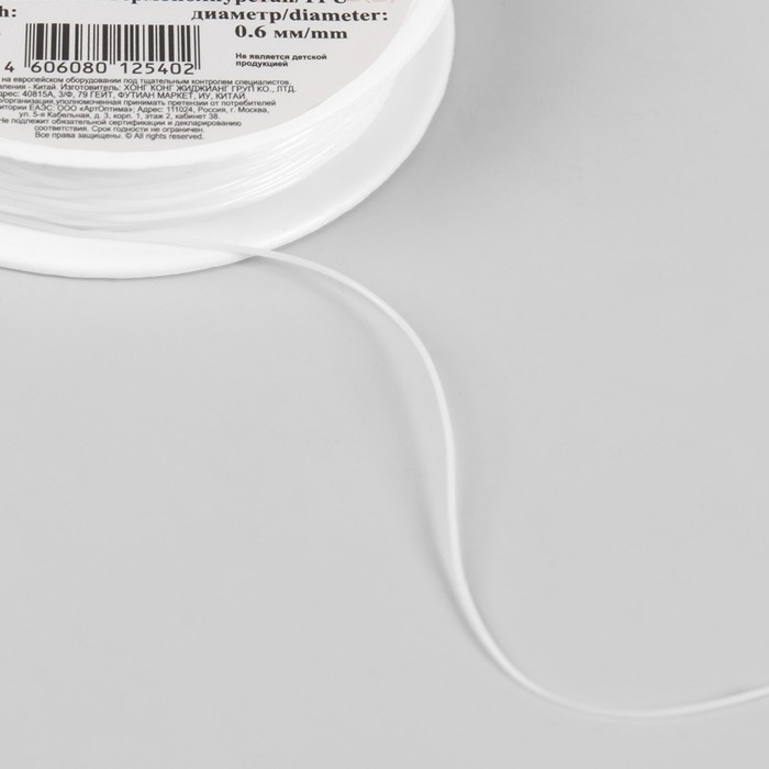 Резинка для бисера, 0,6 мм, 18 ± 1 м, цвет белый