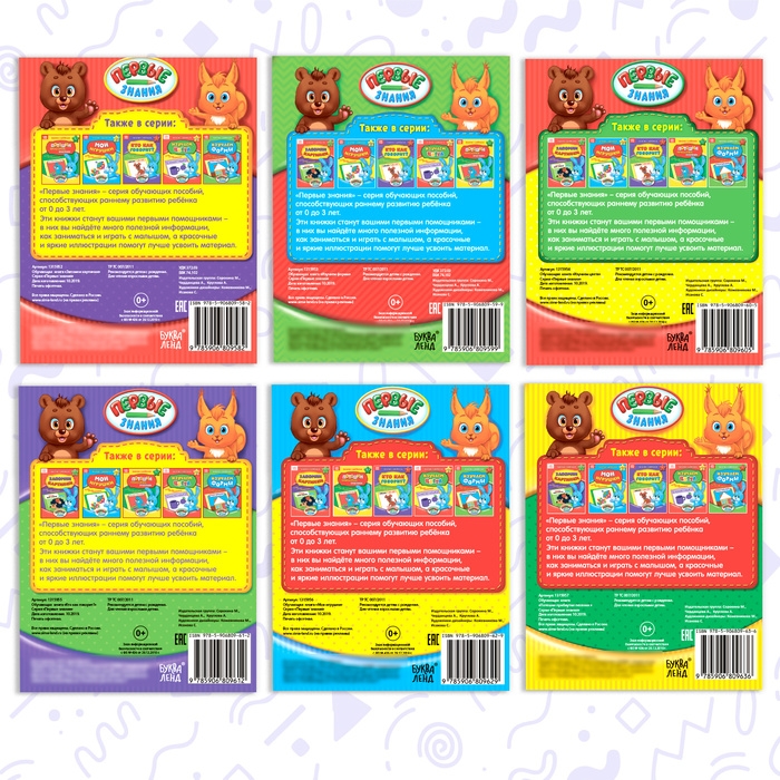 Серия обучающих книг «Первые знания» — это комплексная система занятий с ребёнком. Она делится на три возрастных периода: от рождения до 1 года, от 1 года до 2 лет, от 2 до 3 лет.