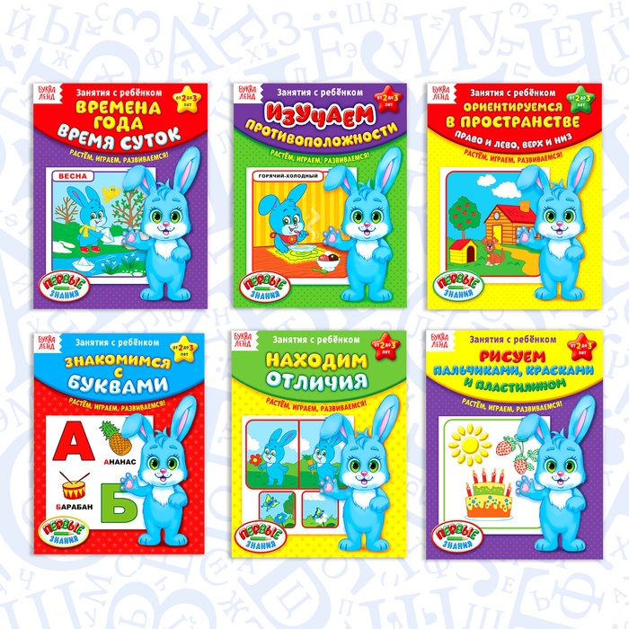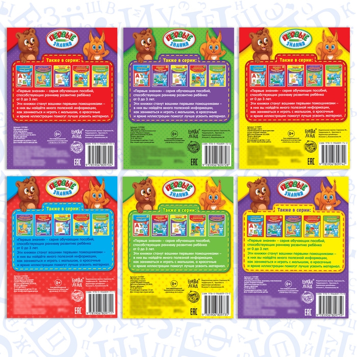 Серия обучающих книг «Первые знания» — это комплексная система занятий с ребёнком. Она делится на три возрастных периода: от рождения до 1 года, от 1 года до 2 лет, от 2 до 3 лет.