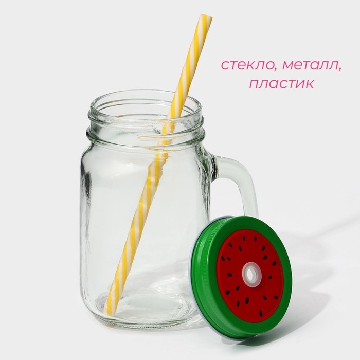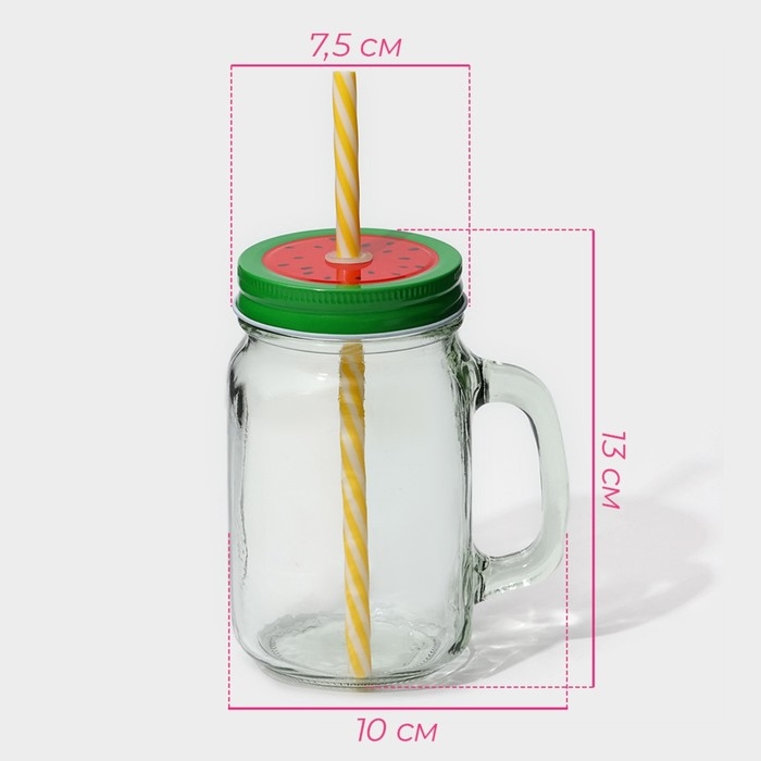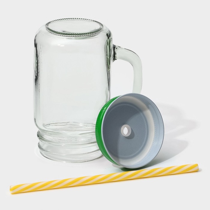 Банка стеклянная с ручкой, крышкой и трубочкой Magistro «Эко», 620 мл, цвет чёрный