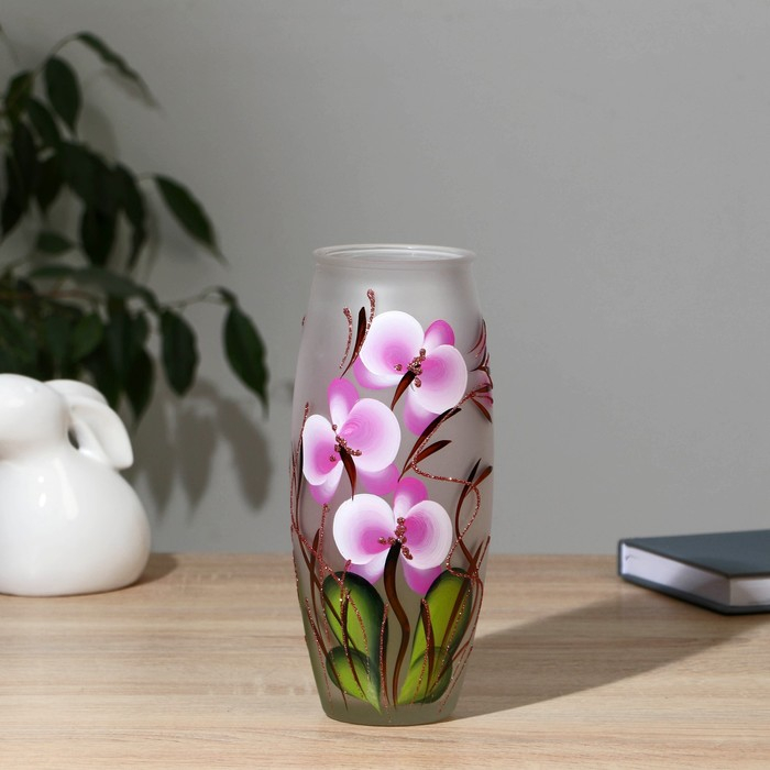Ваза "Орхидея" роспись на матовом стекле, d-7; 10х23 см
