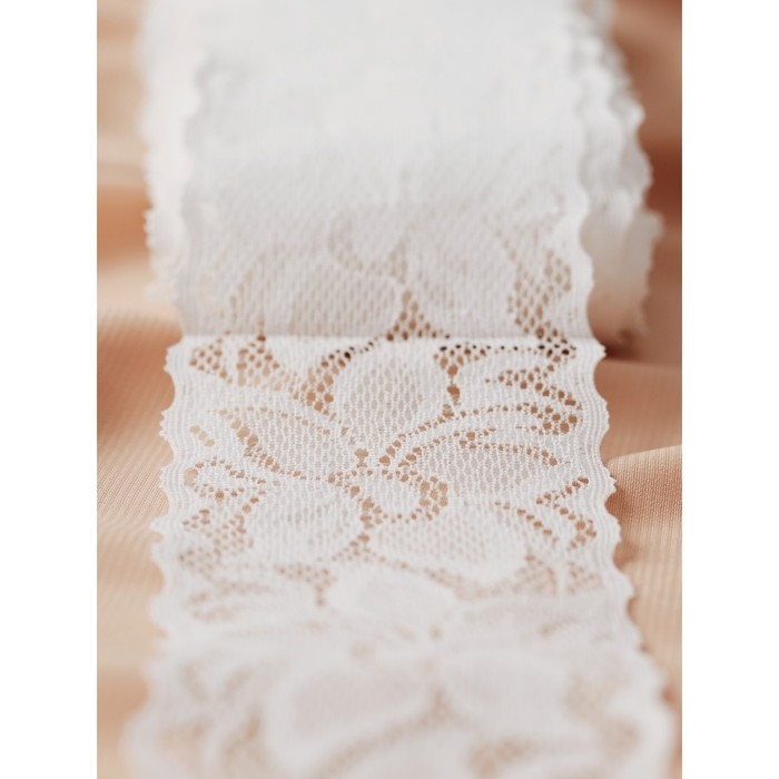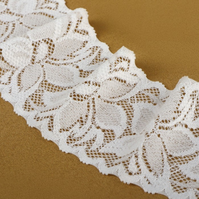 Кружево эластичное, 60 мм × 10 ± 1 м, цвет айвори
