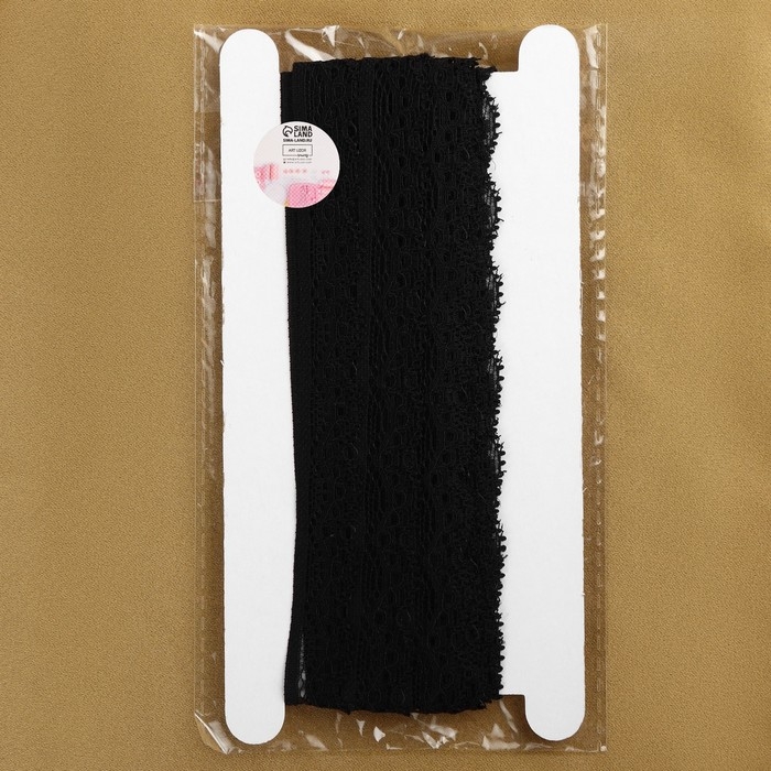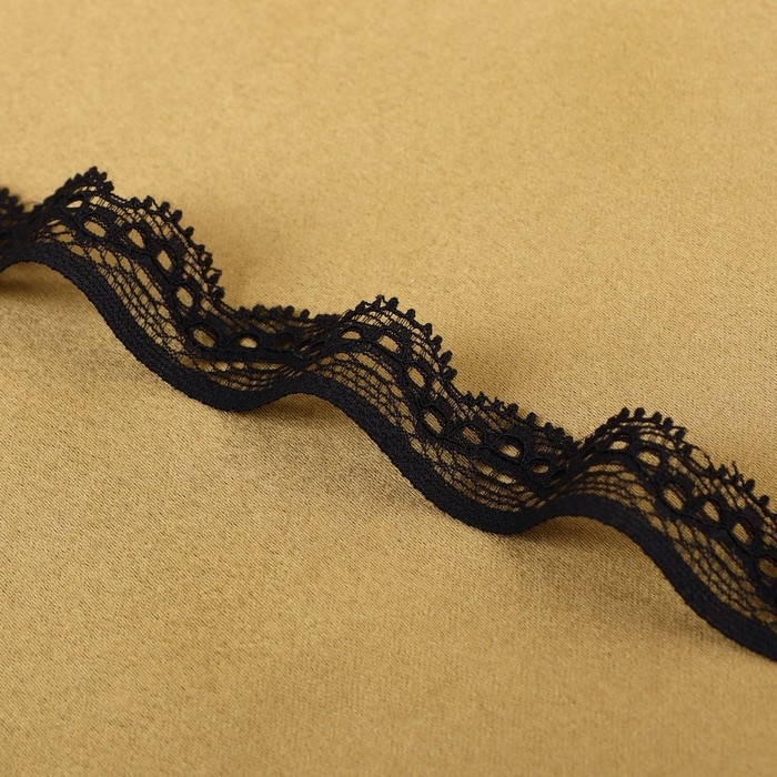 Кружево эластичное, 17 мм × 10 ± 1 м, цвет чёрный