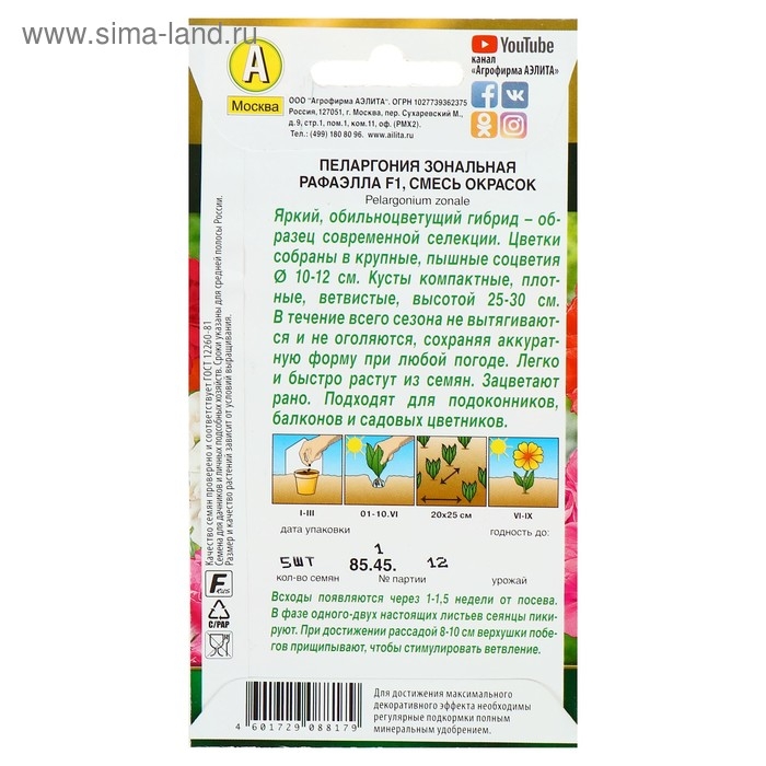 Семена комнатных цветов Пеларгония "Рафаэлла", F1, 5 шт.