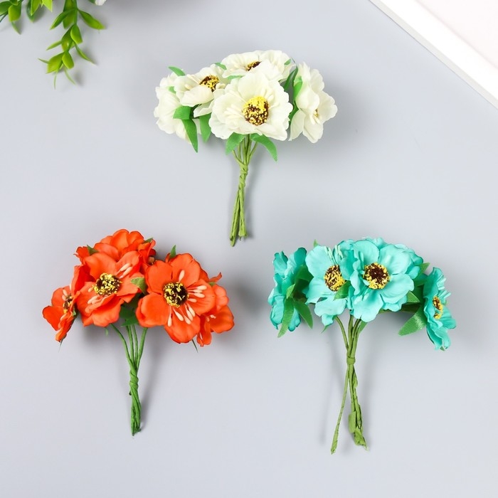 Декор для творчества "Бегония" (1 набор=1 букету) в букете 6 цветов d=3,7 см 10х3,5 см МИКС