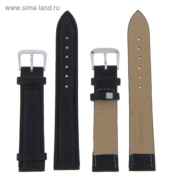 Ремешок для часов кожаный "Соломон", 18 мм, l-20 см, черный
