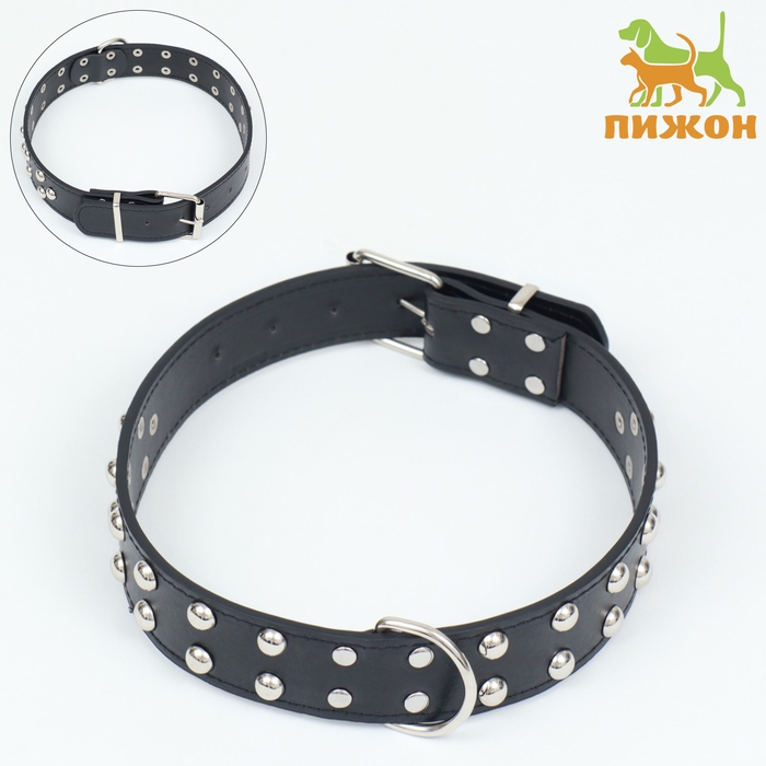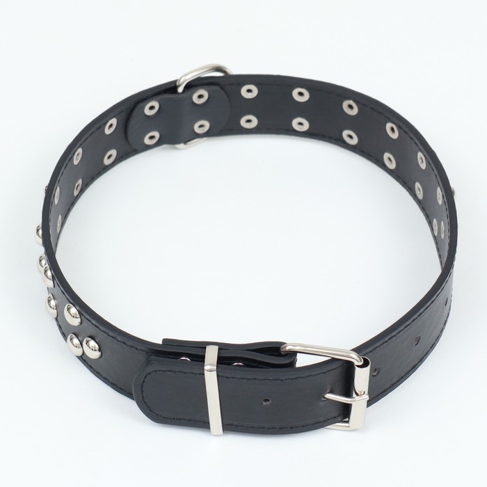 Ошейник клёпаный в 2 ряда, 65 х 3,4 см, ОШ 50-60 см, чёрный