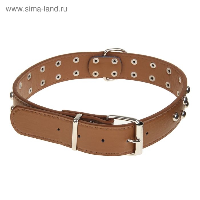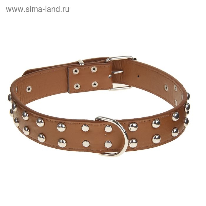 Ошейник клепаный в 2 ряда, 65 х 3,4 см, ОШ 50-60 см, коричневый