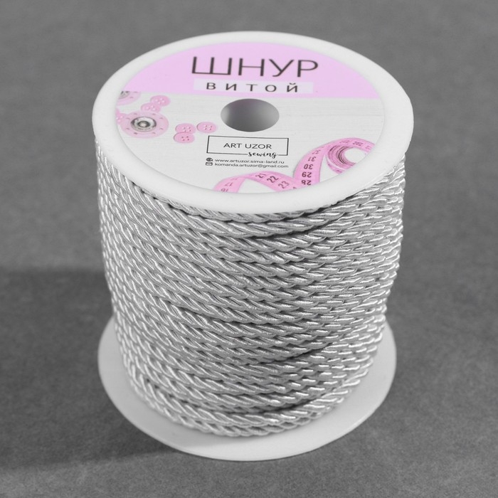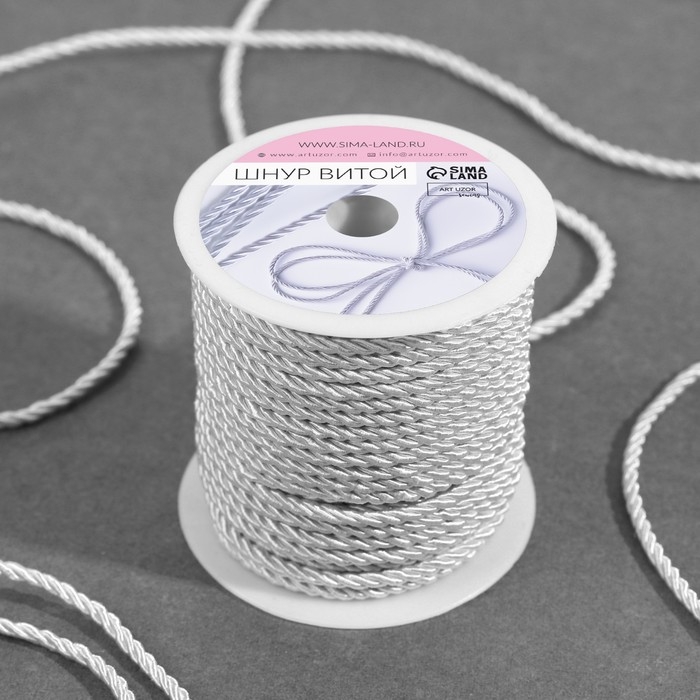 Шнур витой, d = 3 мм, 25 ± 1 м, цвет серебряный