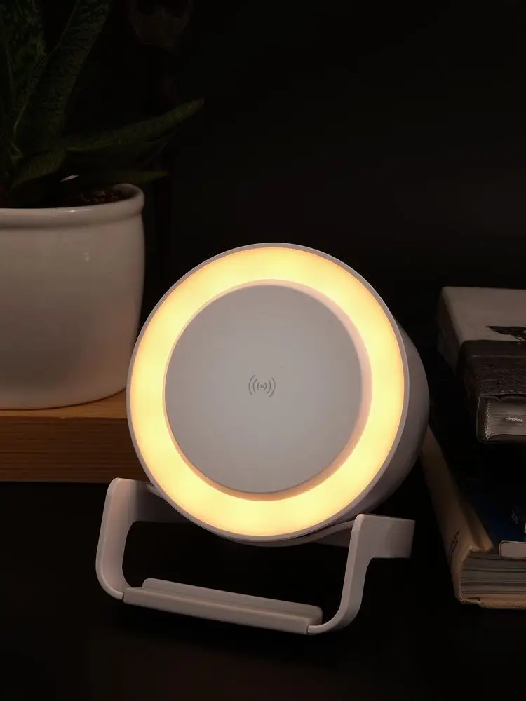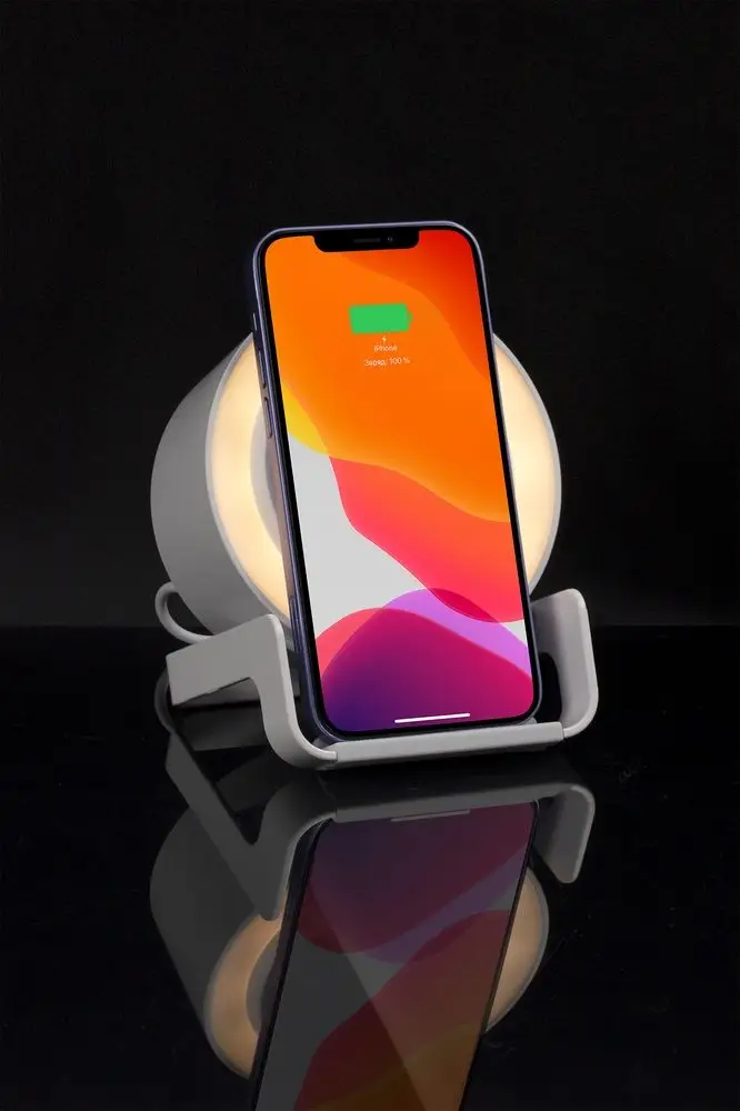 Устройство moonLight — это настольная лампа с bluetooth-колонкой и беспроводной зарядкой, которая также может служить ночником на прикроватном столике.