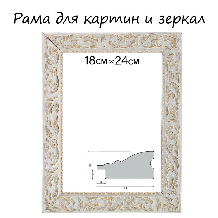Рама для картин (зеркал) 18 х 24 х 4 см, дерево "Версаль", бело-золотая