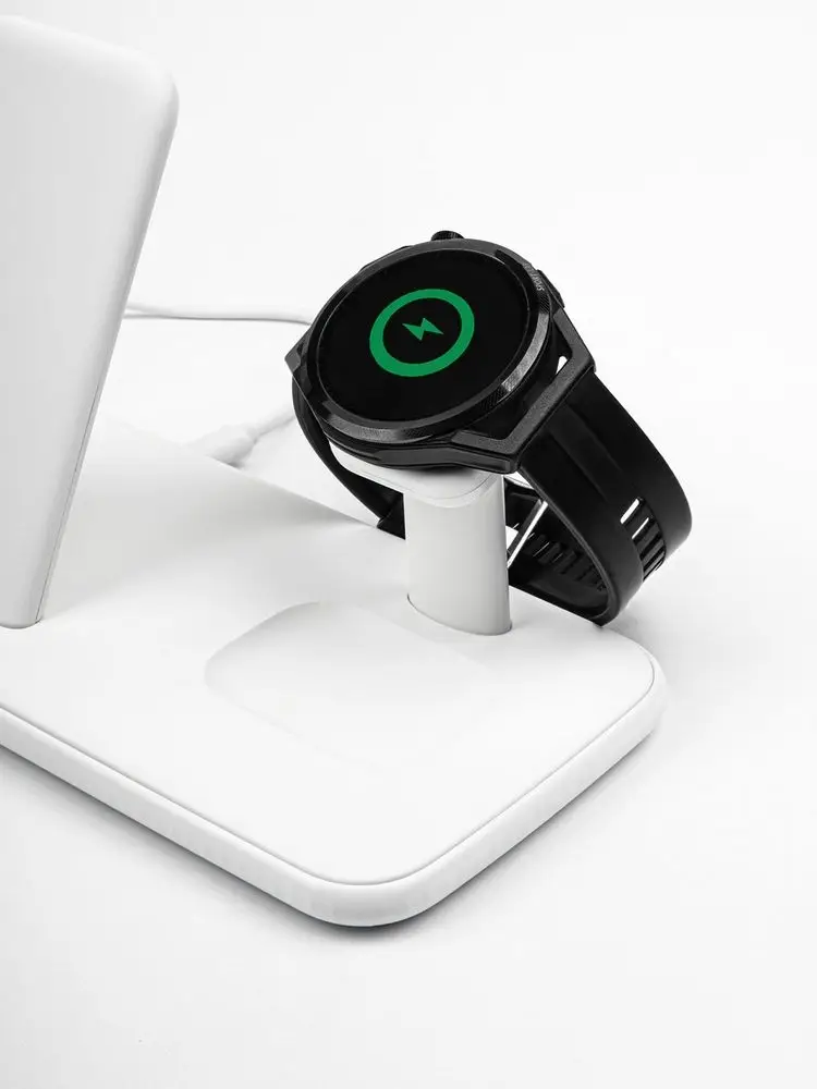 Беспроводная зарядная станция Smart Nest — новый подход к зарядке гаджетов. Вы сможете безопасно заряжать одновременно три устройства без провода и одно устройство через зарядный кабель. Cовместима со смартфонами на iOS или Android и часами (Apple Watch 2–6), наушниками от Apple.