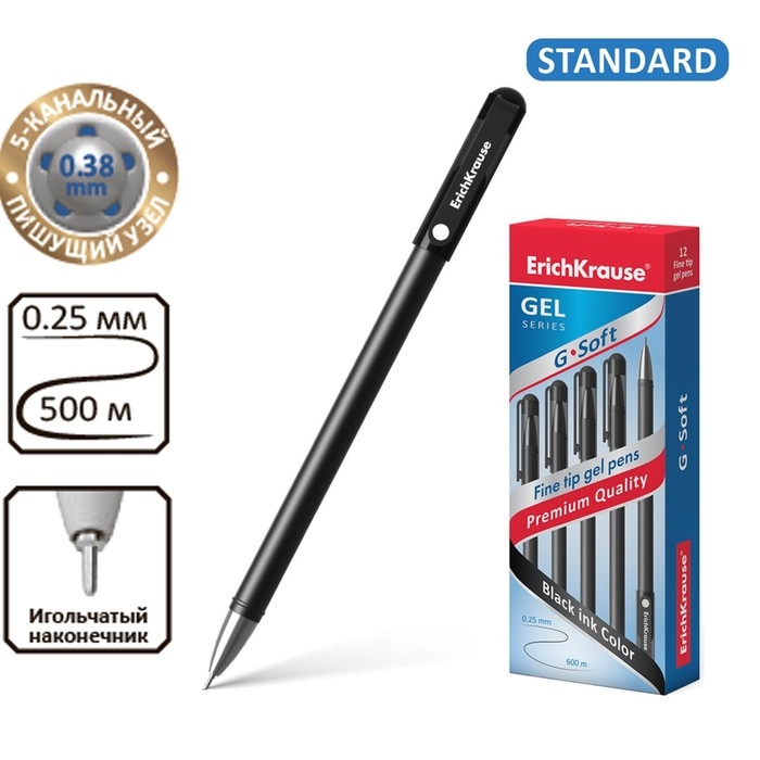Ручка гелевая ErichKrause G-Soft, с покрытием Soft Touch, узел 0.38 мм, чернила чёрные, длина линии письма 600 метров