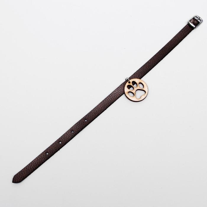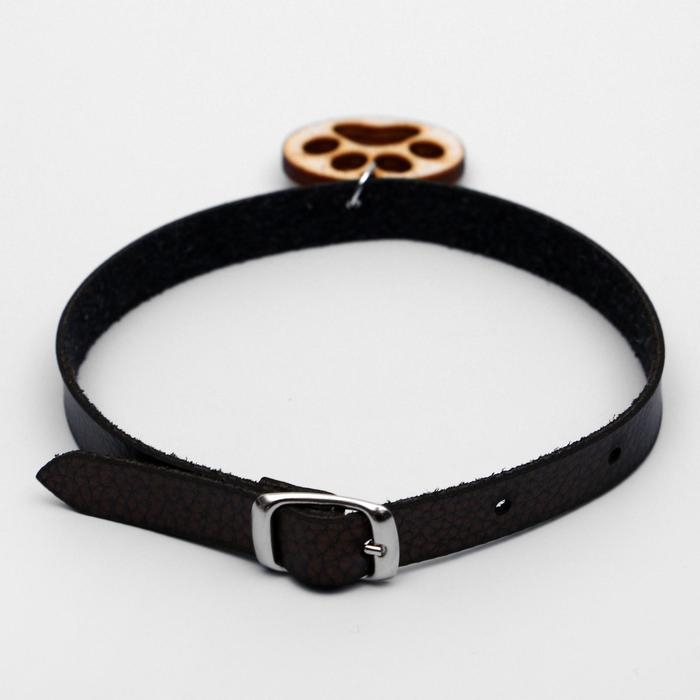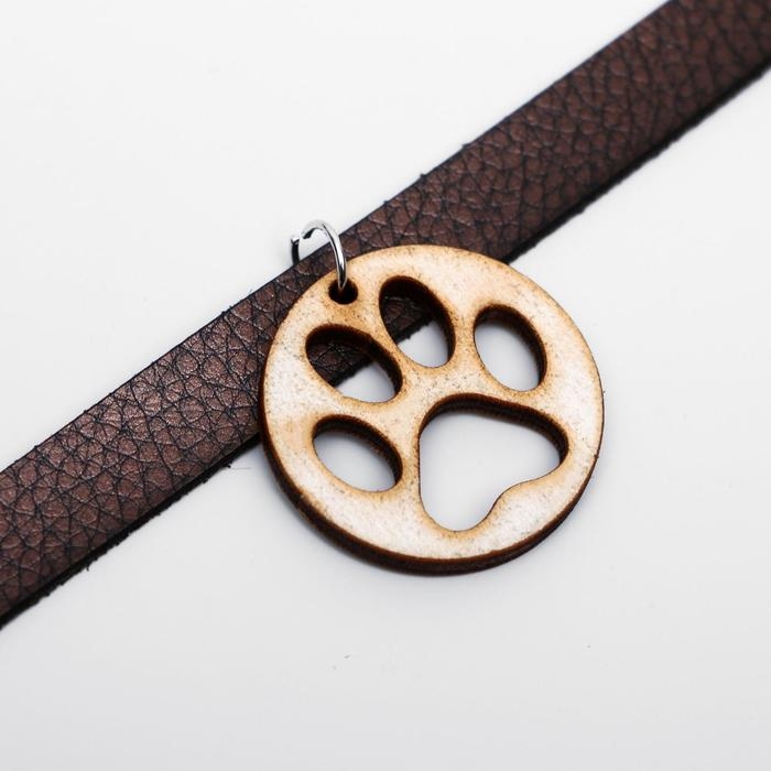 Декоративный кожаный ошейник с подвеской-лапкой (дерево), 34 х 1 см, микс цветов