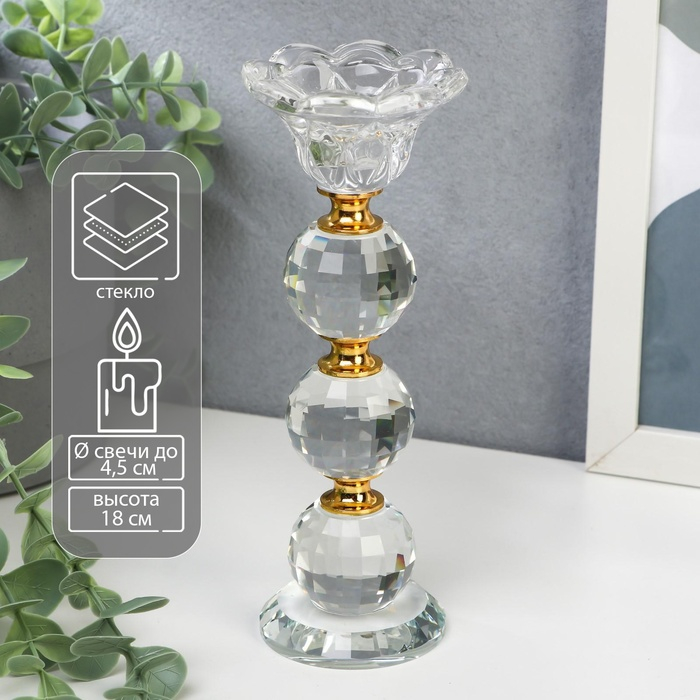 Подсвечник стекло на 1 свечу "Цветочек с тремя хрустальными шарами" 18х7х7 см