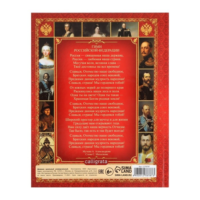 Дневник российского школьника для 5-11 классов, твердая обложка 7БЦ, глянцевая ламинация, 48 листов