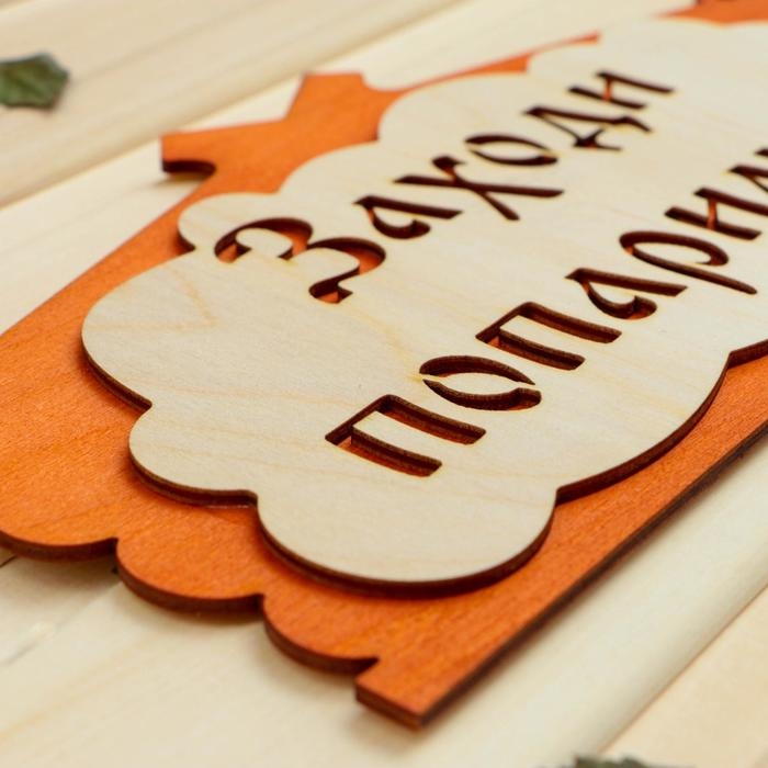 Табличка для бани "Заходи, попаримся" в виде избы 29х15см