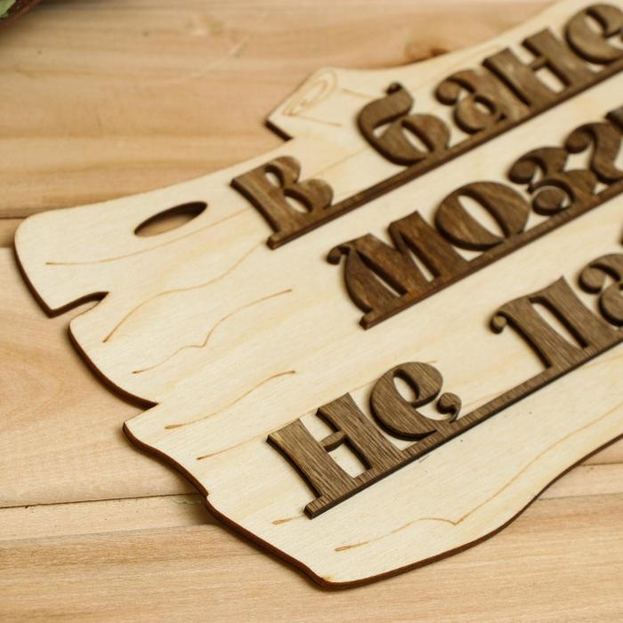 Таблички в бане информируют гостей о правилах посещения парной, помогают с навигацией и просто украшают интерьер. Такой аксессуар из дерева не выделяет вредных веществ, он безопасен и долговечен.