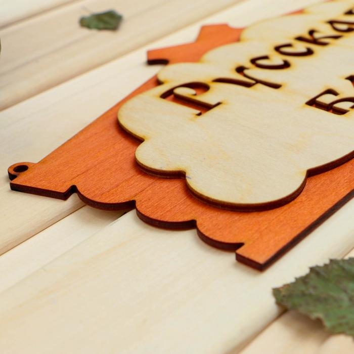 Табличка для бани "Русская баня" в виде избы 30х17см