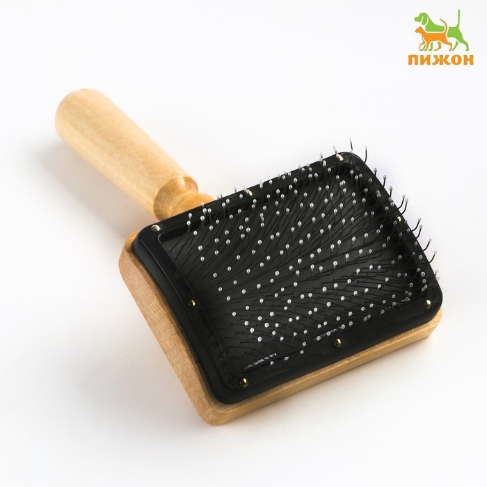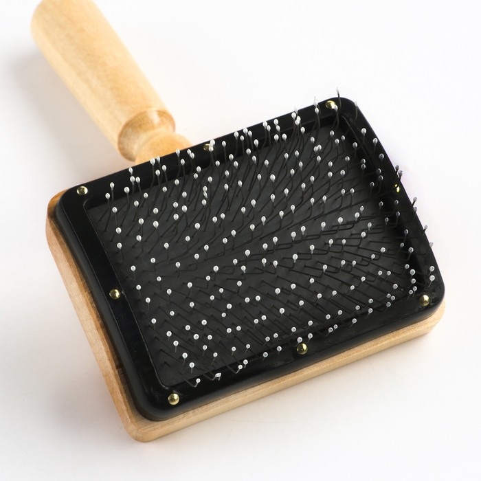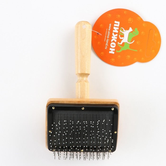 Щётка - пуходёрка деревянная "Премиум" с каплями, для длинношерстных животных, основание 80 х 60 мм