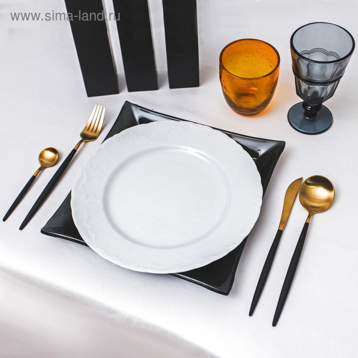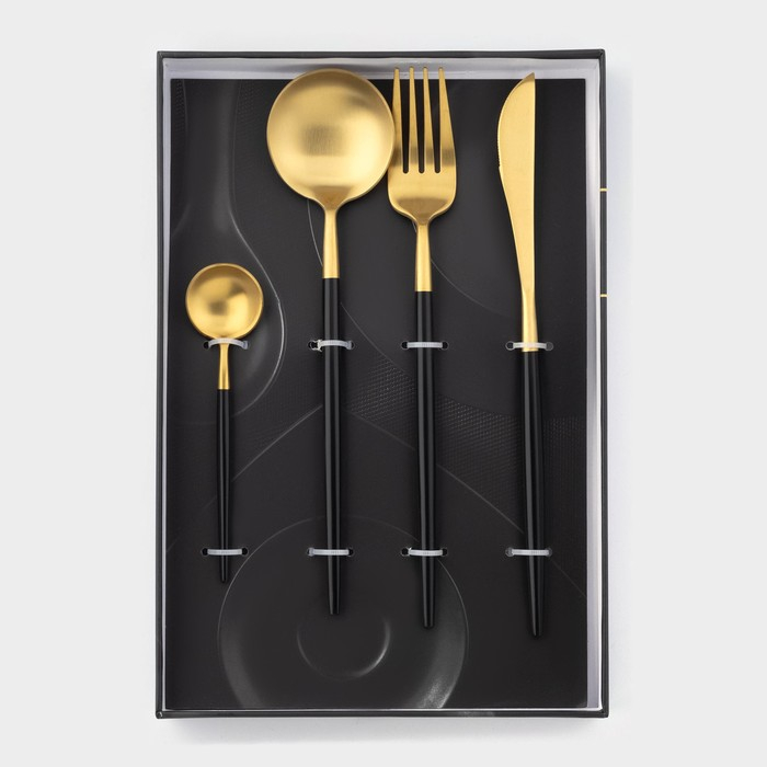 Столовые приборы из нержавеющей стали Magistro «Фолк», 4 предмета, цвет металла золотой, чёрные ручки