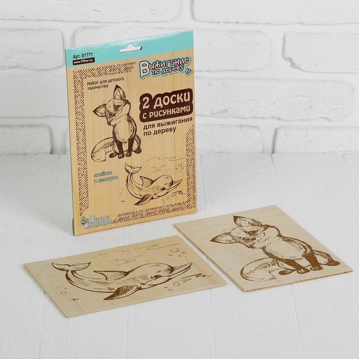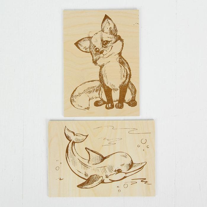 Доски для выжигания "Дельфин и Лисёнок", 2 шт.