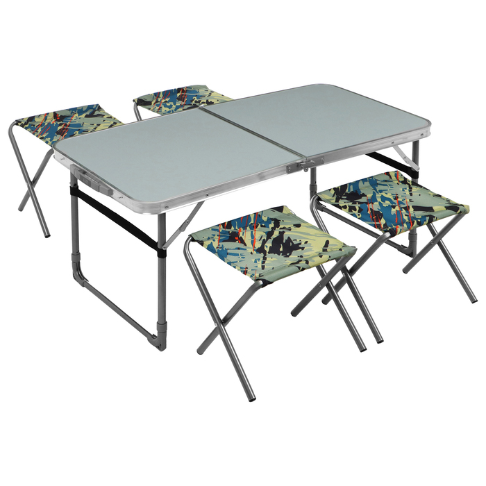 Набор мебели: стол, 4 стула, 102 х 50 х 44.5/61 см, цвет металлик/камуфляж саванна