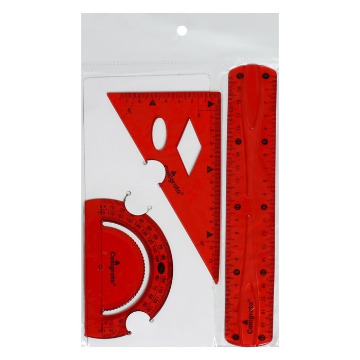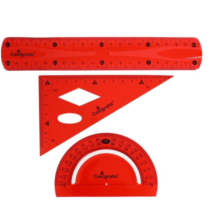 В комплекте: линейка 20 см, угольник, транспортир.