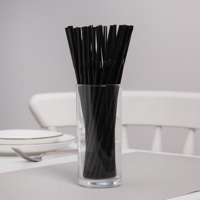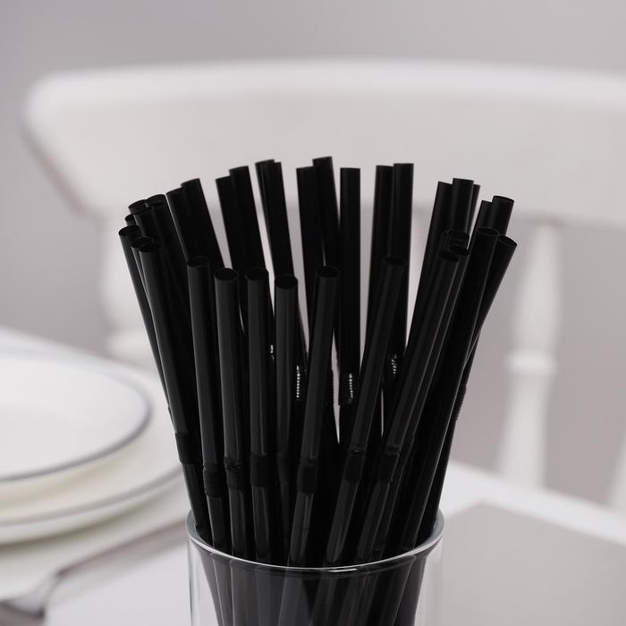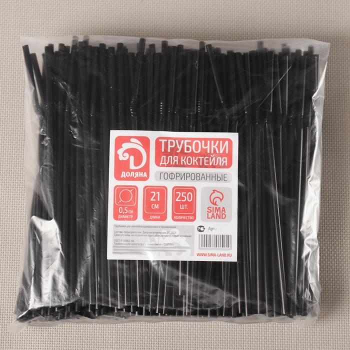 Трубочки одноразовые для напитков Доляна, 21 см, d=5 мм, 250 шт, с гофрой, цвет чёрный