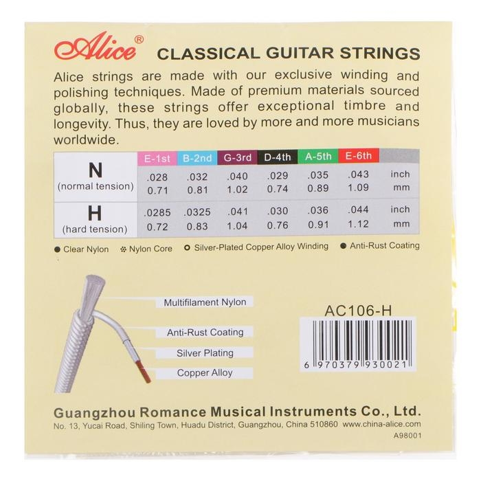 Струны для классической гитары A106-H, нейлон - посеребренная медь, сильное натяжение
